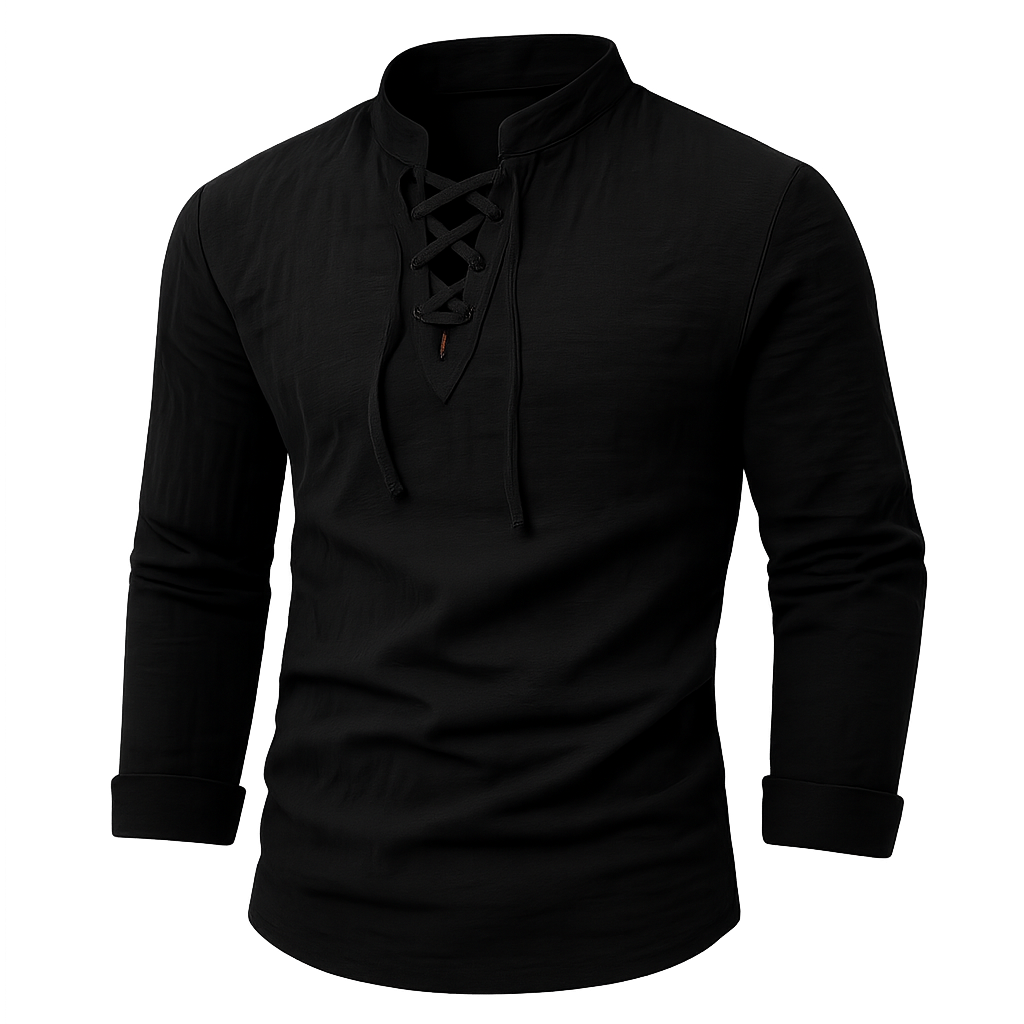 Japan Style Men’s Linen Cotton Stand-Collar Shirt