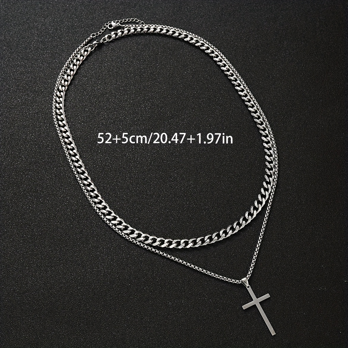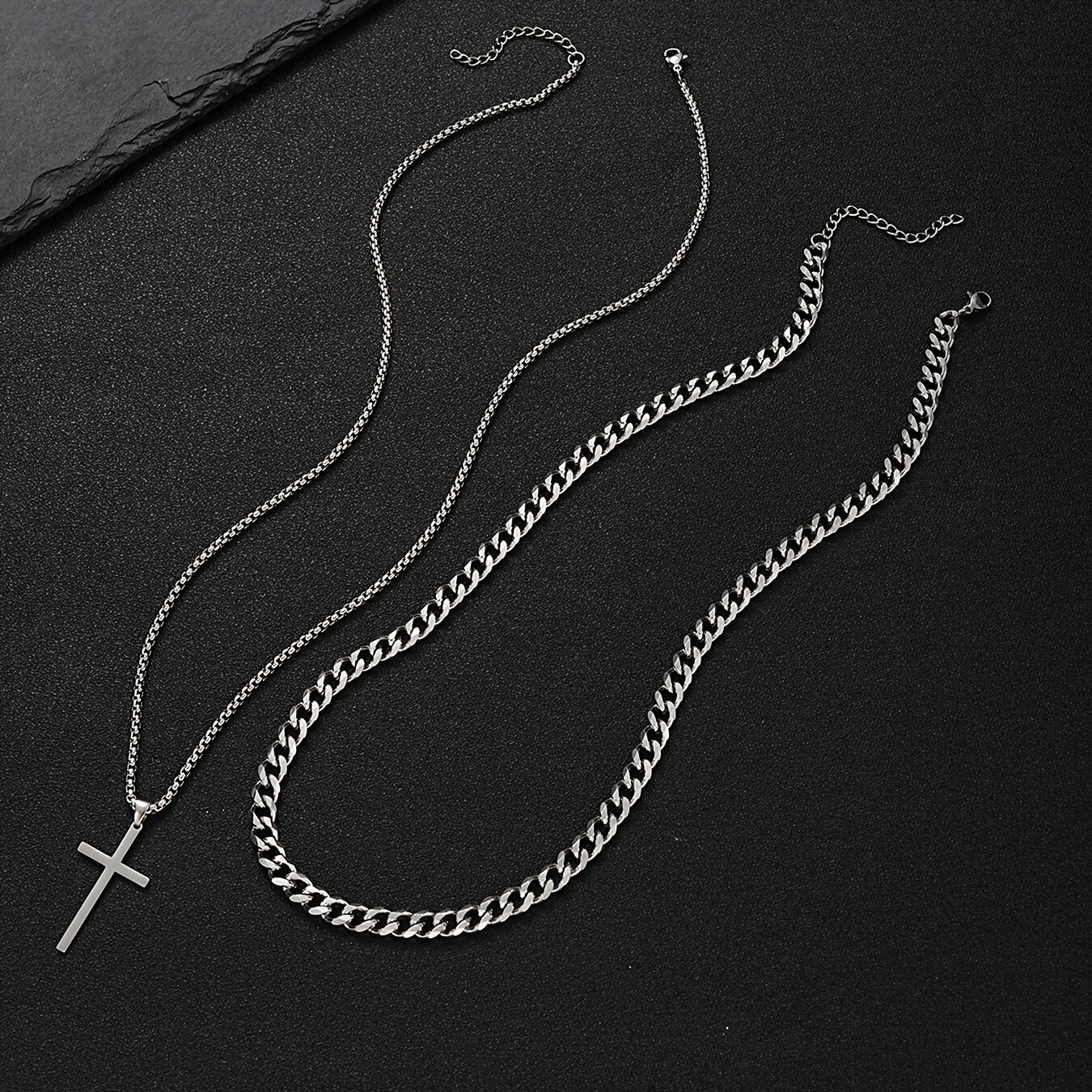 Stainless Steel Cross Cuban Chain Necklace Set
