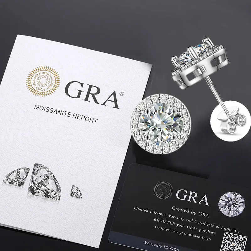 Each Moissanite Stud Earrings Size: 0.28Ct/6mm, 0.46Ct/6.7mm, 0.66Ct/7.7MM, 1.2Ct/8.5mm, larger than others 4.4mm/6mm/7mm with only 0.005 ct. This halo moissanite earrings comes in the deluxe package including silver wiping cloth, storage box, gift bag, and drawstring, with an extra pair of silicon earring back for replaced need. There’s also a BEST WISHES card for blessing. Our moissanite halo earrings is a great gift for wife, family or friends on birthday, anniversary